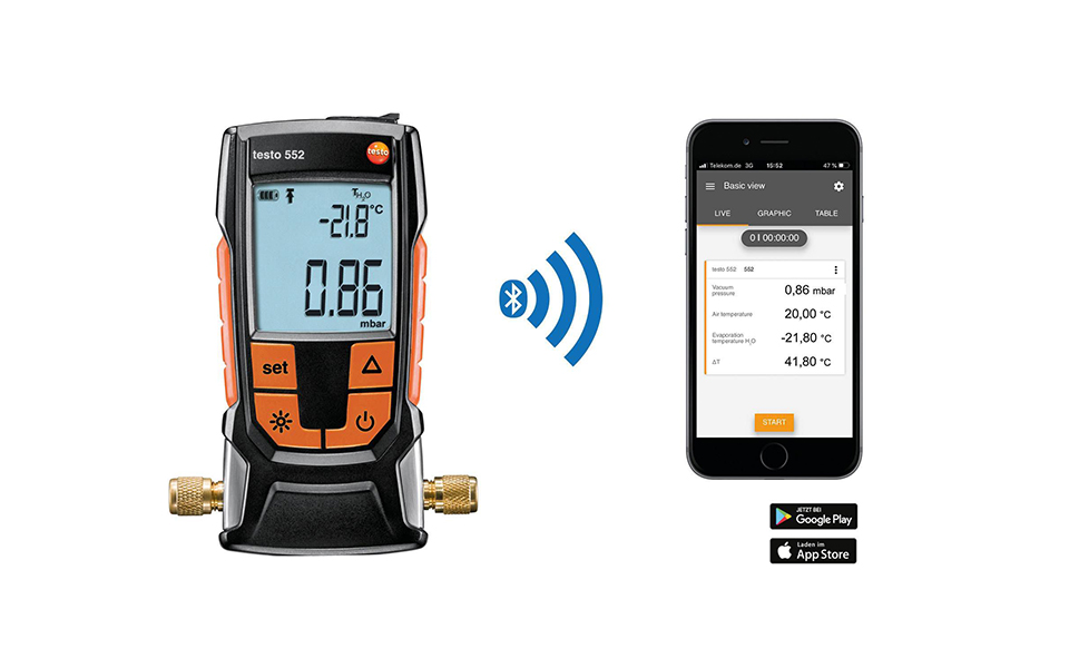 數顯式真空表帶無線藍牙適用于制冷及熱泵系統(tǒng)的真空度檢測;精確判斷制冷系統(tǒng)的除濕程度及雜質的去除程度。通過 testo Smart APP 智能應用程序可以讓您便捷地在智能設備上讀取測量數據,在現場完成和發(fā)送測量報告。